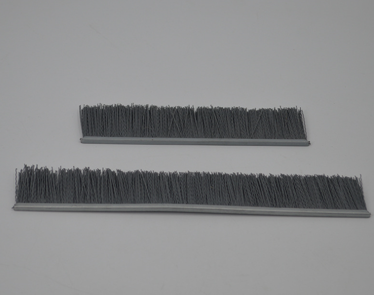 磨料絲毛刷條:采用鋼帶夾住磨料絲,中間用鐵絲壓住固定。刷毛緊固,不脫毛,鋼帶的厚度最小達(dá)2.5mm*2.5mm,最大14mm*14mm,單根長度不限。毛長按需定制。