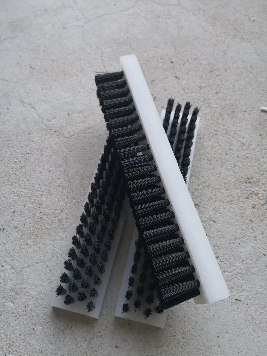 PP板條刷: 制作條刷底座的材質有很多種,比如:PP板,PVC板,木頭,金屬板等,PP板的材質比PVC板質量要好,但價格也要高出許多。不同的工作環境,選用不同的底座。底座厚度常用的